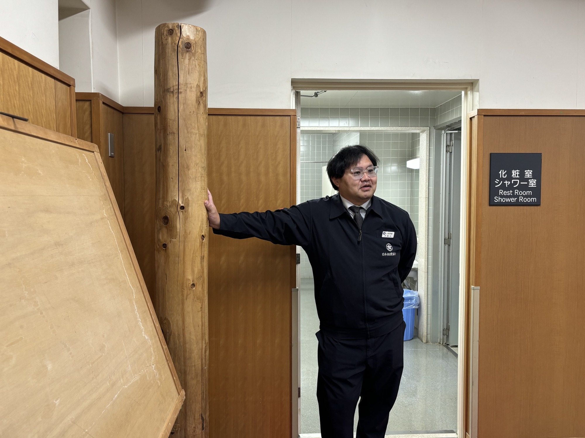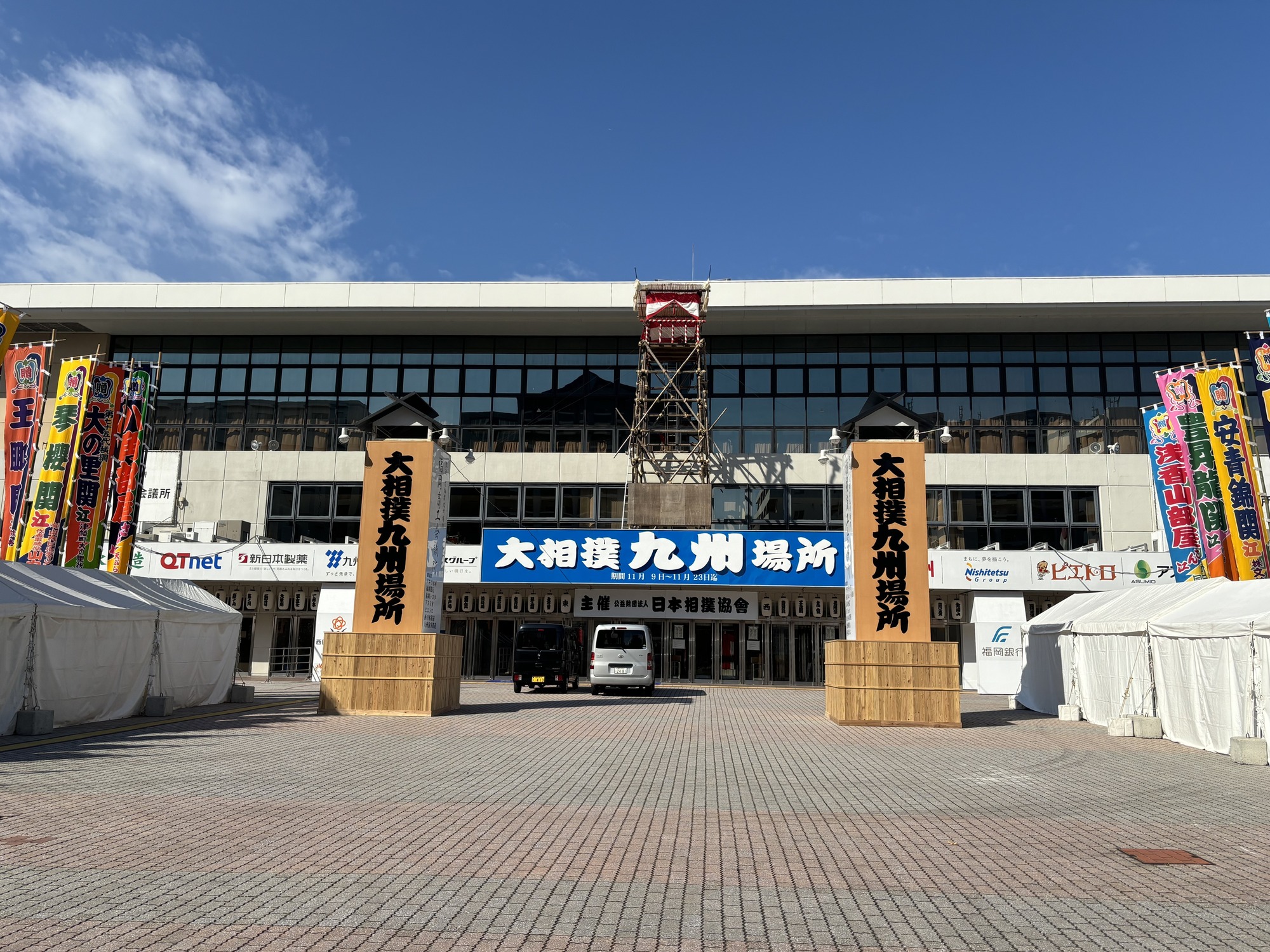 福岡国際センターは、九州場所開催を前提に建設された建物であるため正方形の形になっており、化粧室やシャワールームもあります。