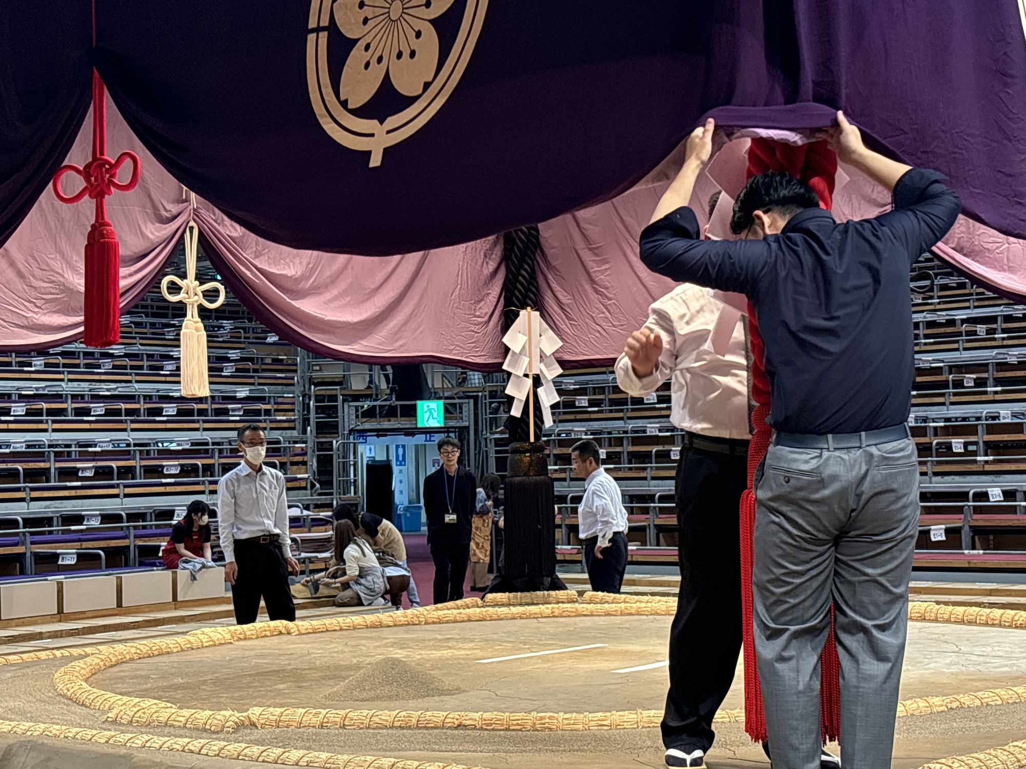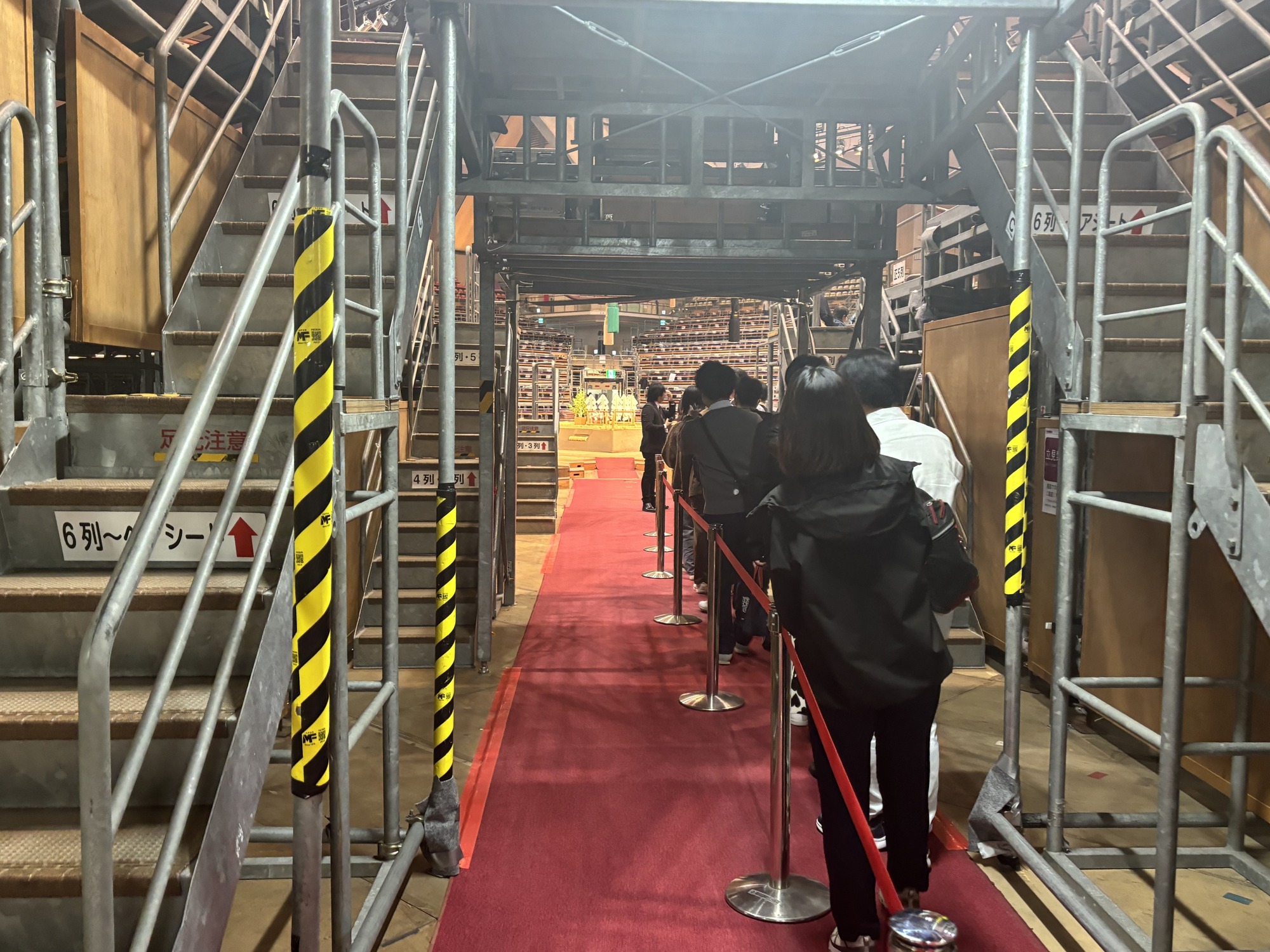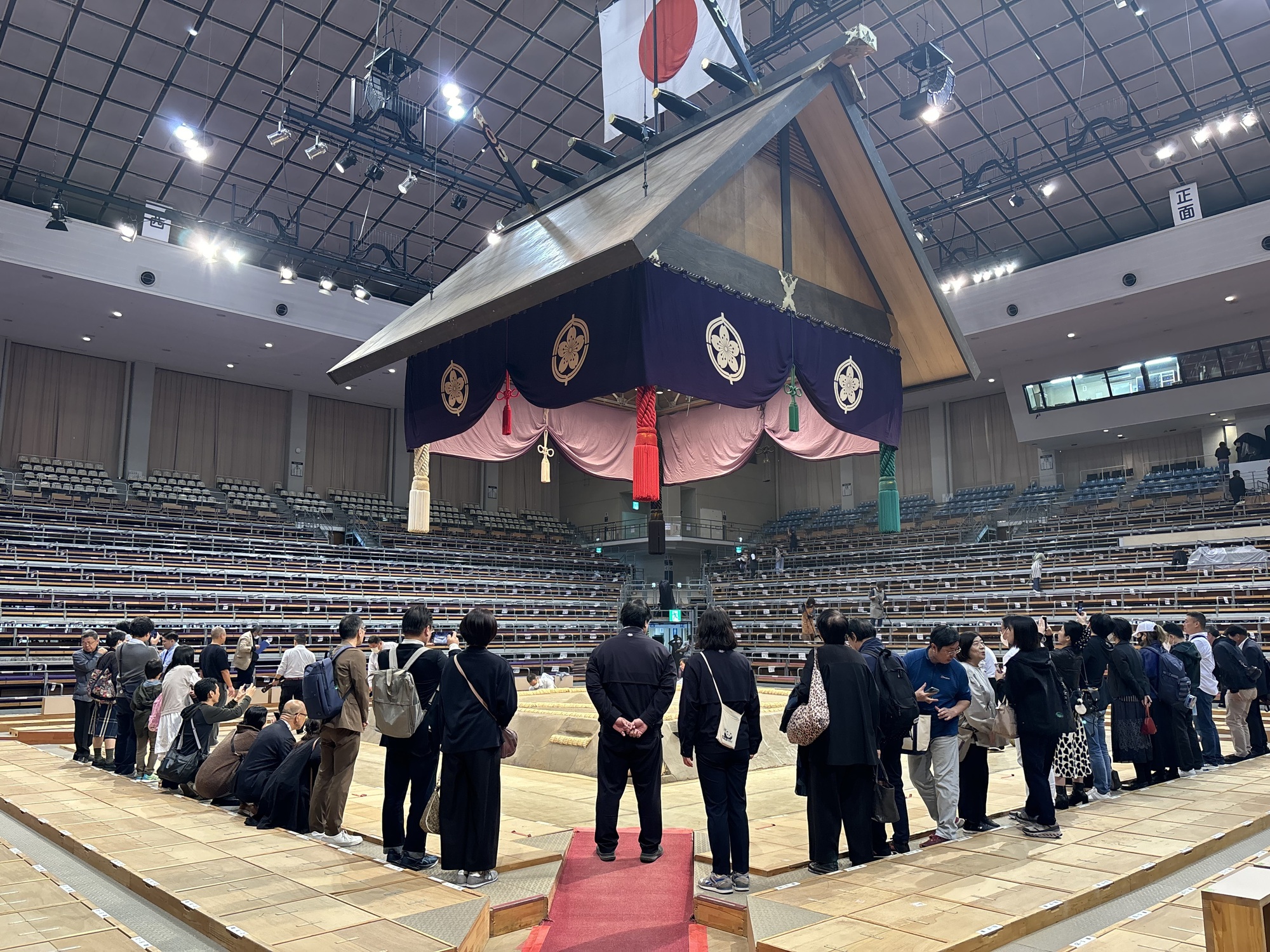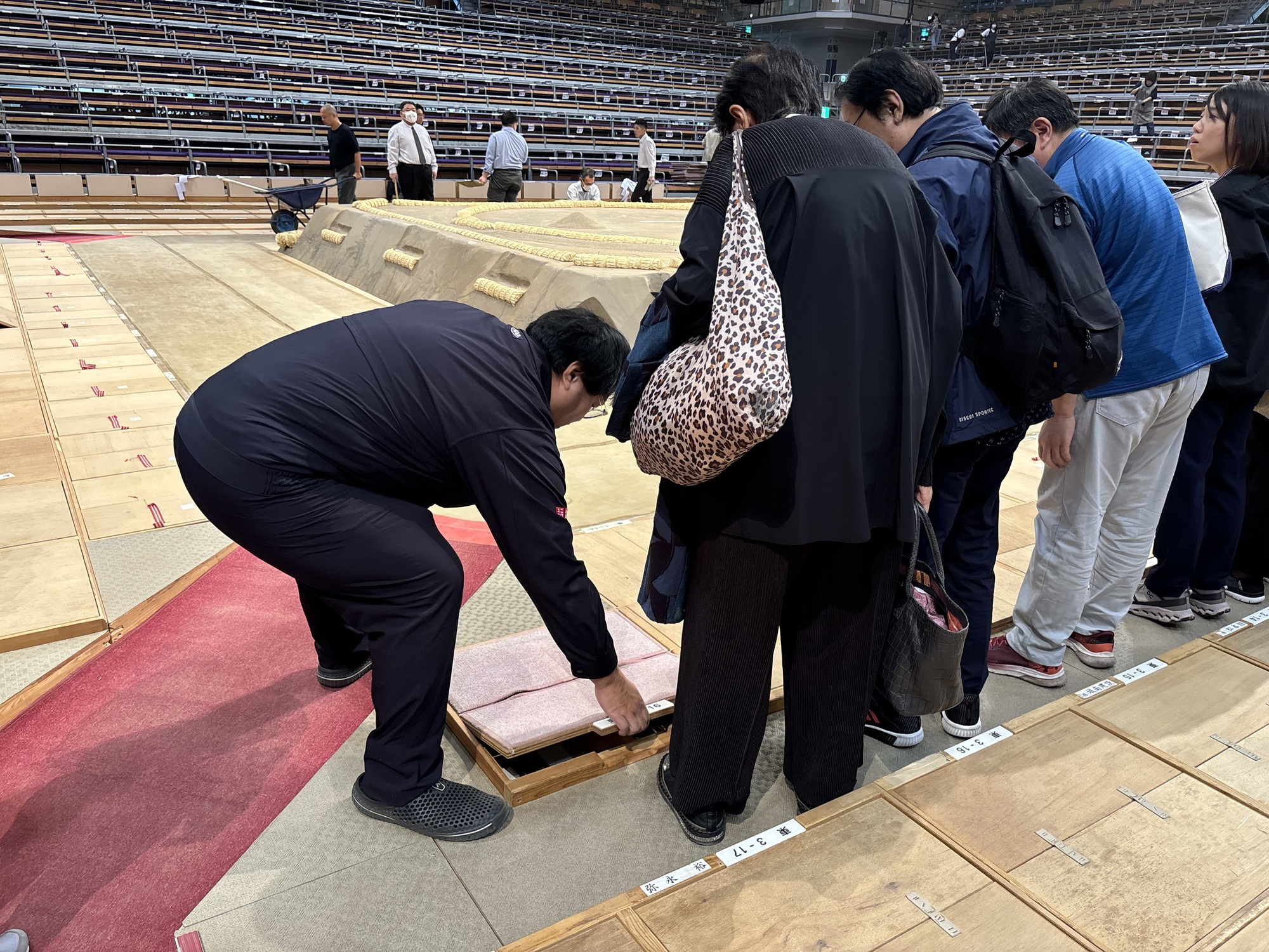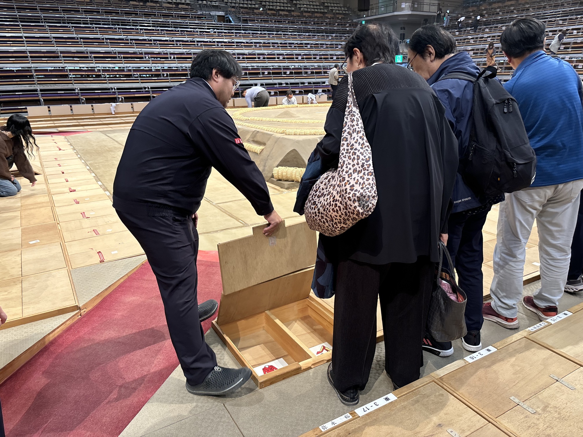 十一月場所が開催される福岡国際センターにて、開催前日の11月8日(土)に小結コース以上の会員様限定で『土俵祭見学会』と十一月場所担当親方による館内予習ツアーを実施し、当選された15組30名にお越しいただきました。