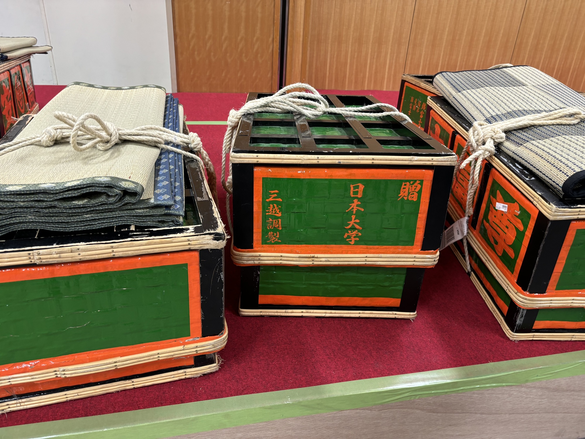 最初に東の支度部屋を見学。すでに関取の明け荷が運び込まれていました。