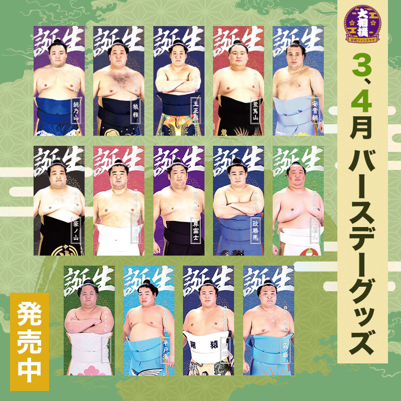 今回は3、4月に誕生日を迎える力士が対象で、4アイテムございます。