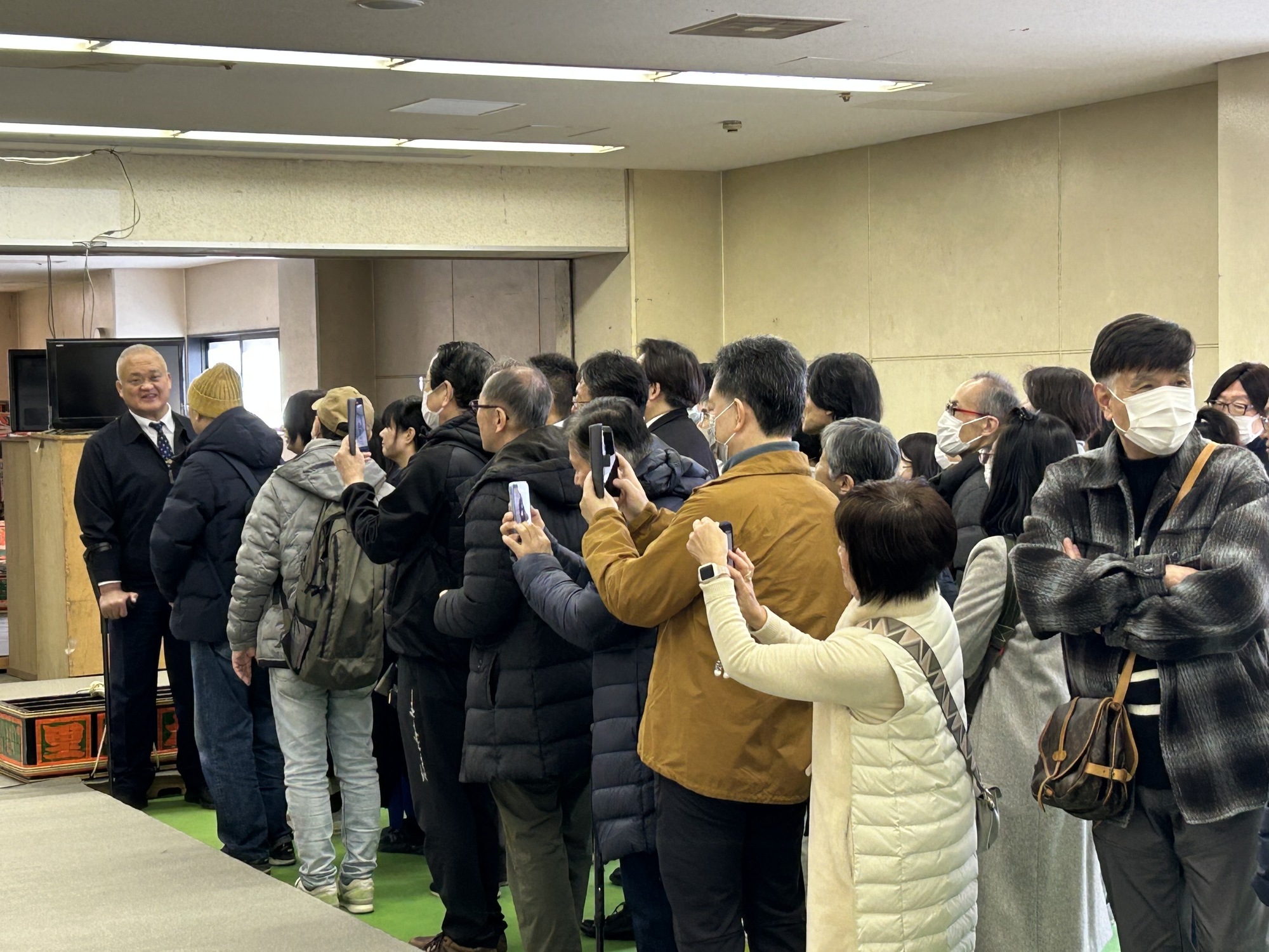 三月場所が開催されているエディオンアリーナ大阪にて、開催前日の3月7日(土)に小結コース以上の会員様限定で『土俵祭見学会』と三月場所担当親方による支度部屋見学ツアーを実施し、当選された28組53名にお越しいただきました。