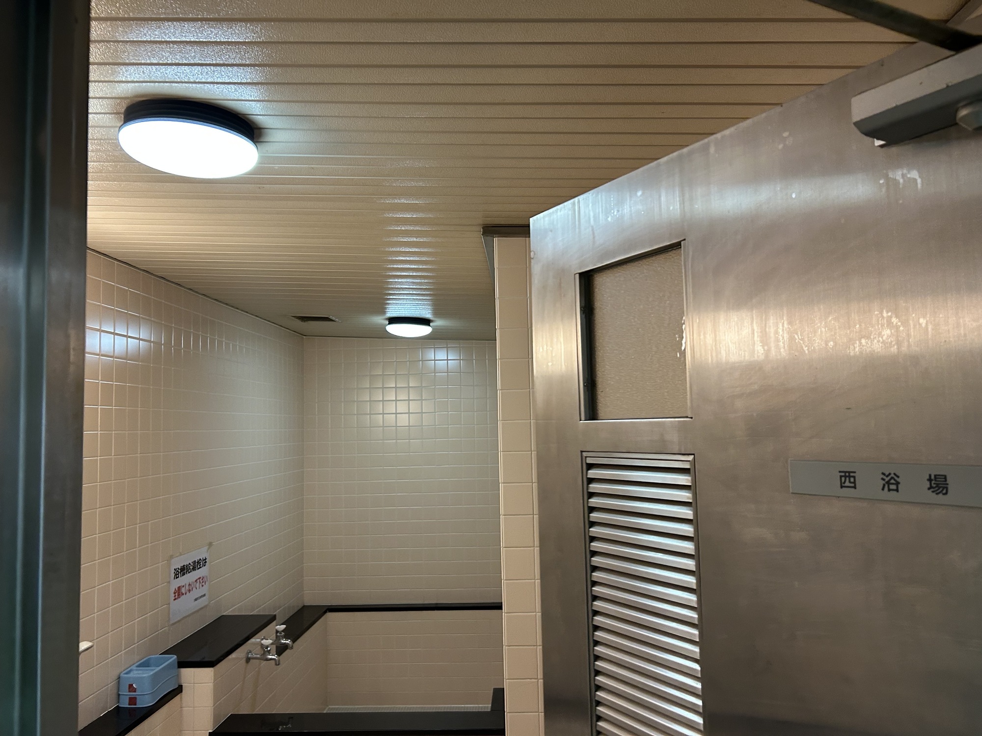 続いて、風呂場を見学。場所中に力士たちが汗を流している場所とあり、皆様興味津々です。