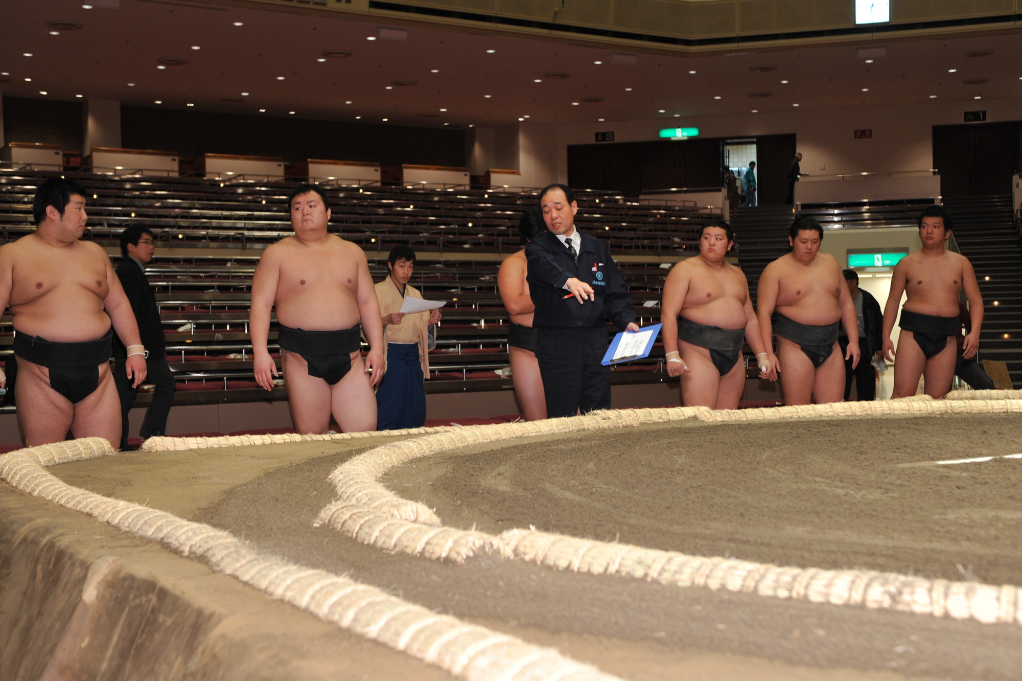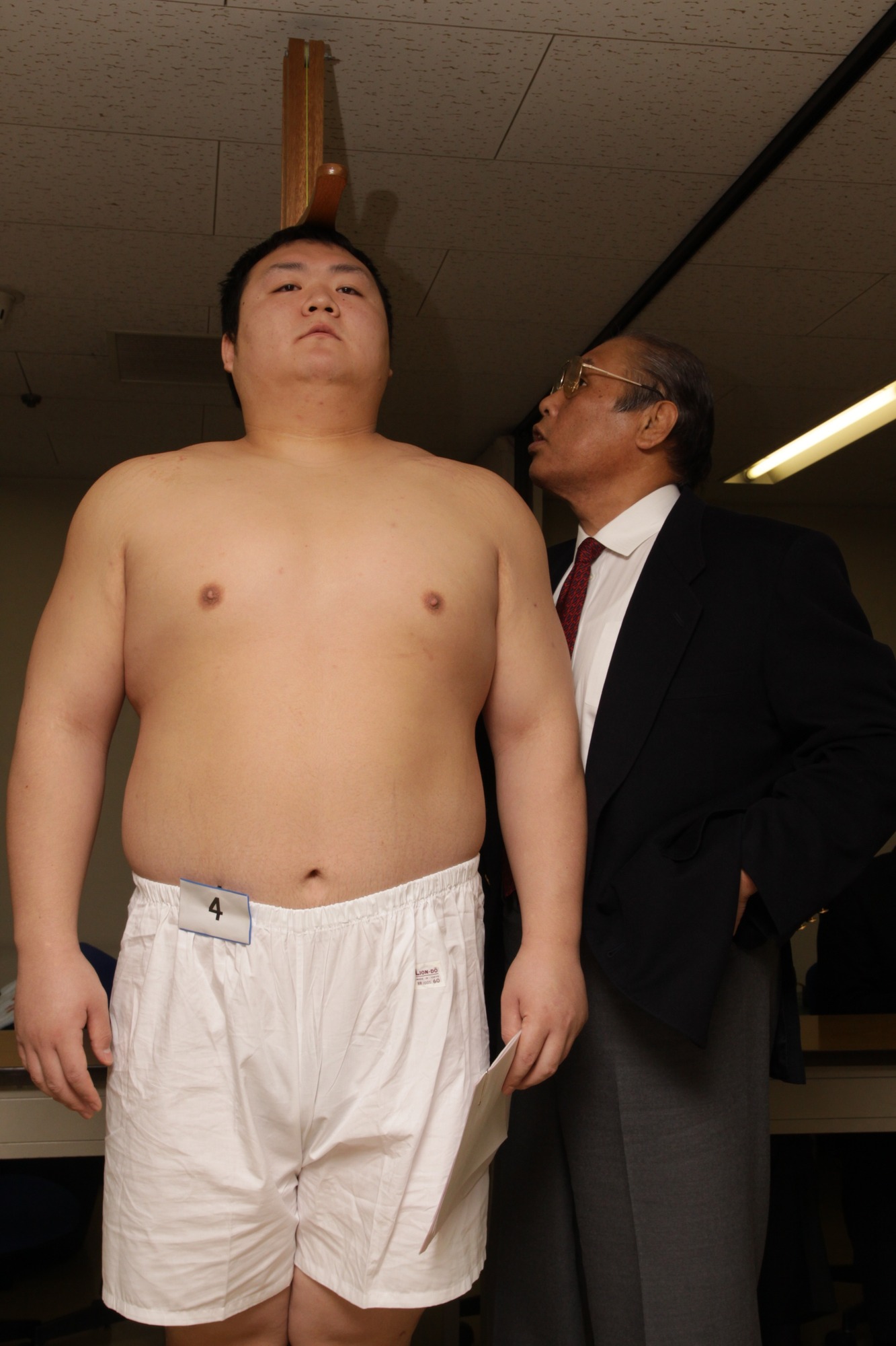 近畿大学卒業後、2009年(平成21年)一月場所入門・新弟子検査の様子。