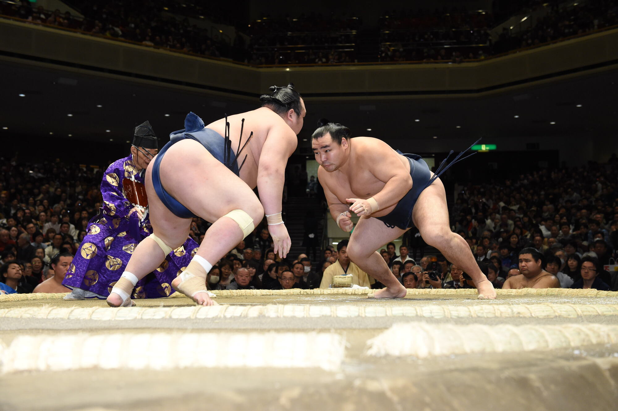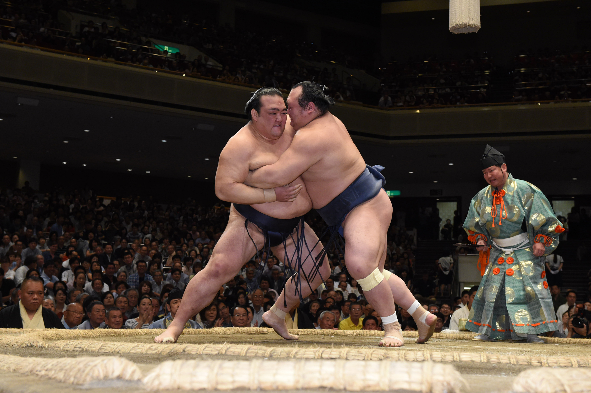 当時大関だった稀勢の里に対し、同じ左四つの体勢からがっぷりと組み合い、1分半にも及ぶ大熱戦の末に寄り切って勝利しました。