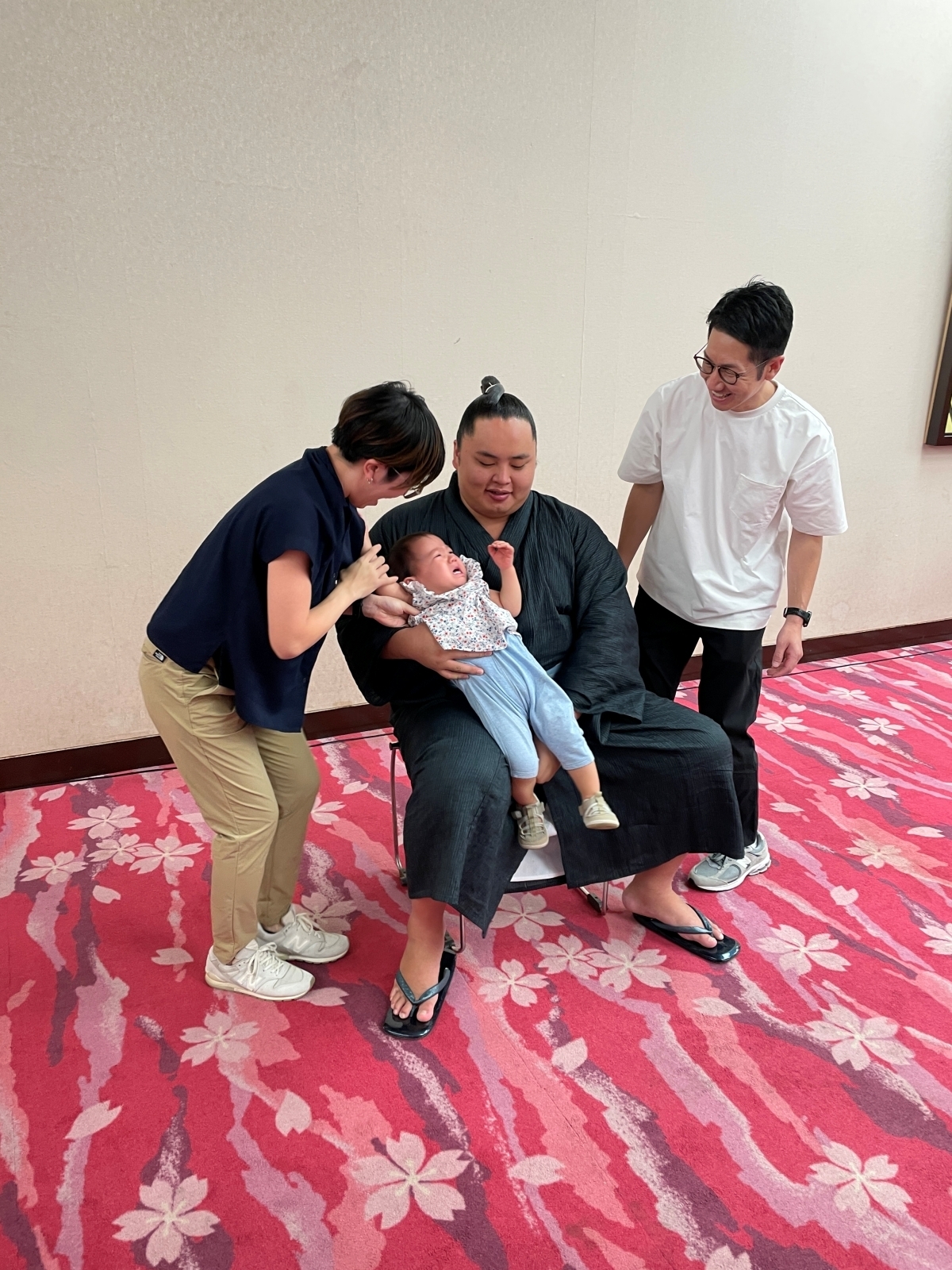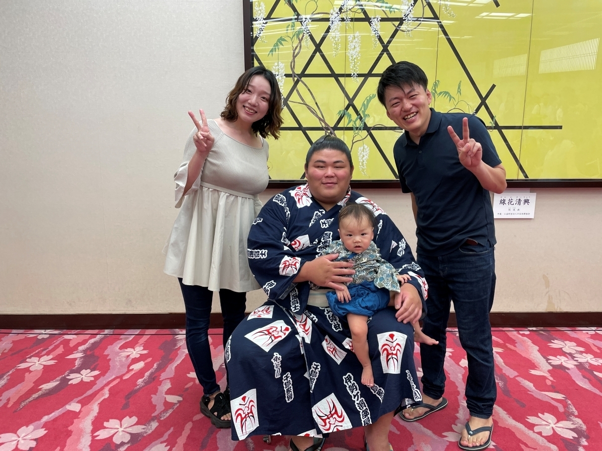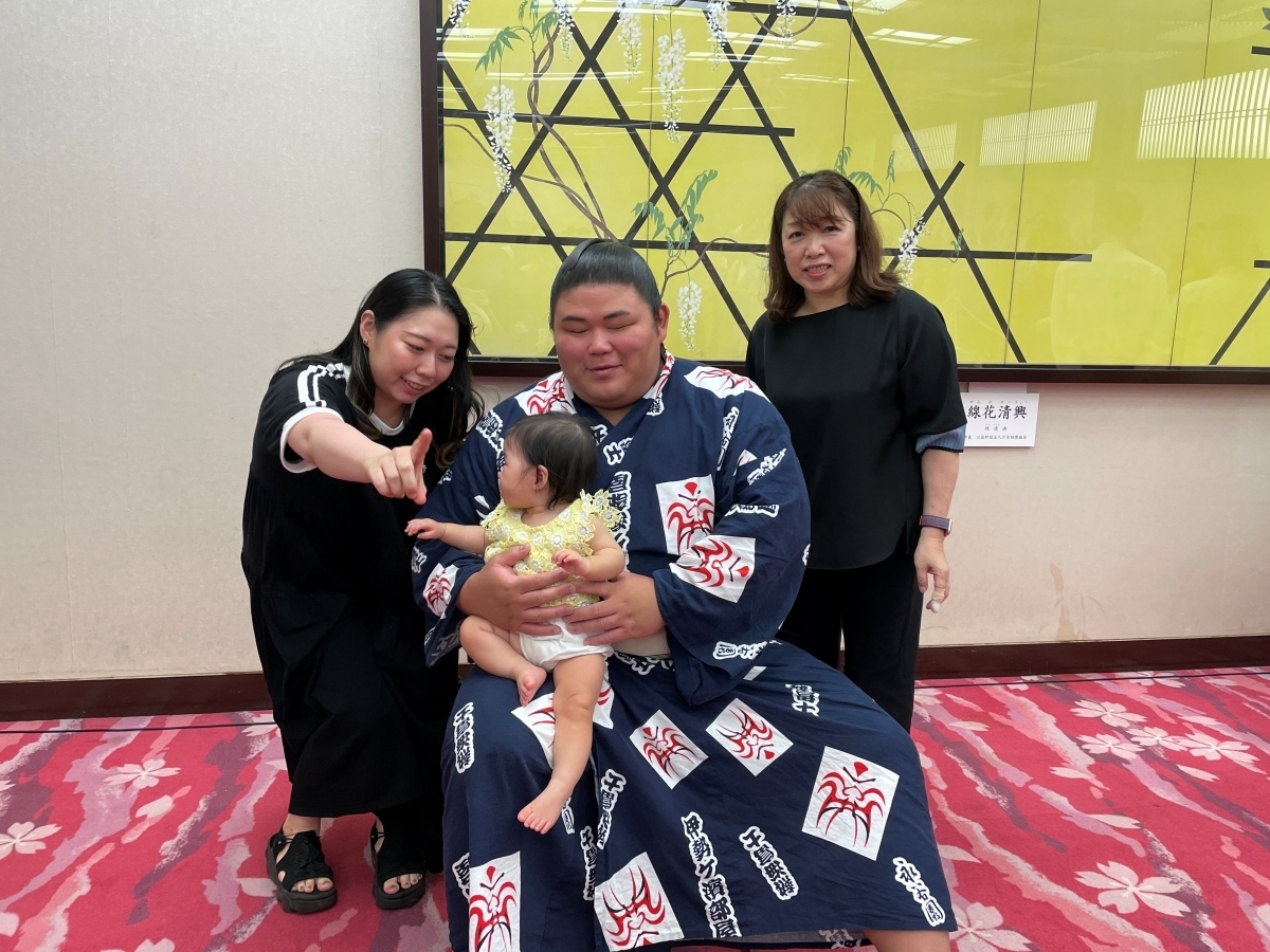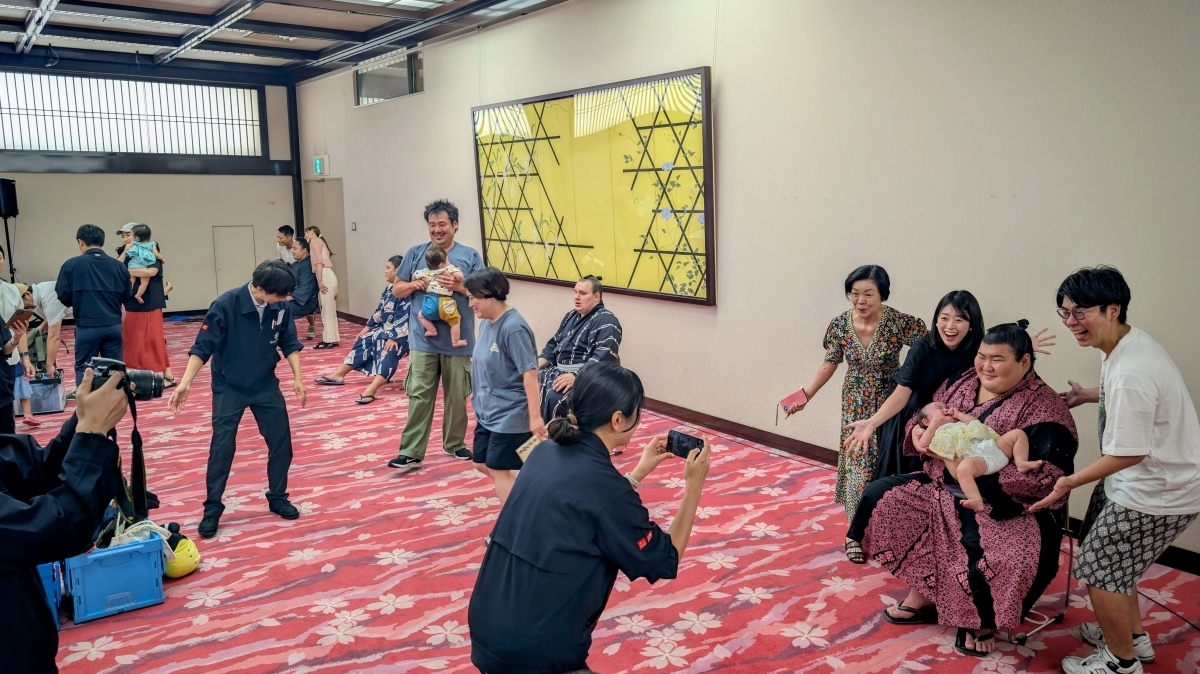 体のおおきな関取にびっくりしてしまったのか、撮影直前でお子さんが泣き出してしまうプチハプニング(?)も...